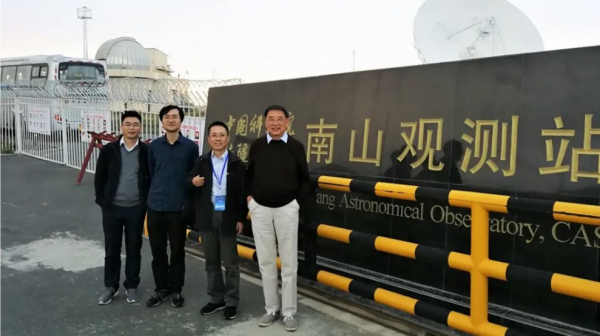 与沈元壤教授(右)及方伟、虞华康教授 (中国科学院新疆天文台,2018)
