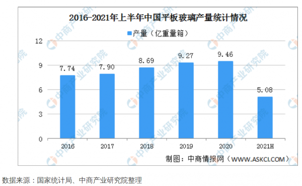 2021年上半年,全国建材行业运行总体平稳,质量效益全面提升,行业生产稳定,产量增长较快,主要产品出厂价格环比小幅回升,经济效益继续大幅增长,商品进、出口金额同比大幅增长。据国家统计局数据,1-6月,平板玻璃产量5.1亿重量箱,同比增长10.8%;平板玻璃工业出厂价格环比上涨11.2%,同比增长74.1%。规模以上平板玻璃工业营业收入同比增长46.2%,利润总额同比增长155%。由此可见,玻璃需求巨大。