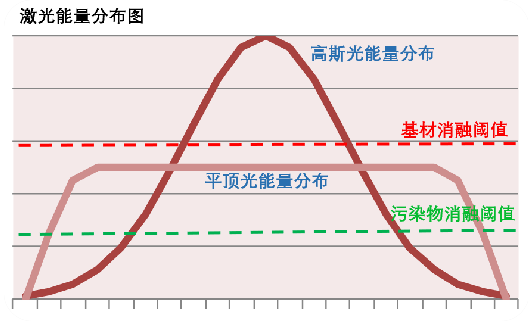 三、 欧陆娱乐清洗技术开发 (1)什么是欧陆娱乐清洗? (2)欧陆娱乐清洗原理是什么? (3)欧陆娱乐清洗能量如何分布? 绿色-红色虚线区域为加工窗口 能量密度高于基材消融阈值,基材容易受到伤害,可以增加一定粗糙度;能量密度低于污染物消融阈值,则无法达到清洗干净的效果。 高斯光斑 圆形平顶光斑 方形平顶光斑