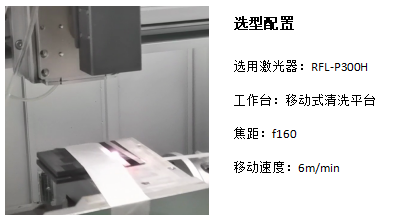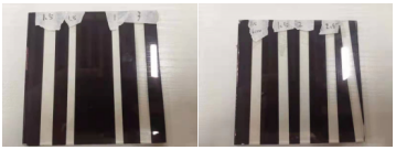 五、太阳能电池板镀膜清洗应用案例 太阳能电池板镀膜层清洗 清洗要求:为了边缘镶嵌进铝框中,要求清洗宽度10mm,由另一面去除反面黑色镀层,不得损伤玻璃基材,效率至少6m/min,清洗完之后呈透明色。 测试效果如下图所示: 太阳能电池板镀膜层清洗后效果图 由上图测试可知,用P300H清洗太阳能电池板镀膜层清洗效率达到6m/min,清洗后结果呈现透明色,清洗效果符合清洗要求。