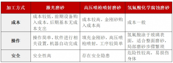玻璃具有较高的化学稳定性,而化学刻蚀毛化所采用的化学试剂具有一定的化学腐蚀性,对环境、设备和操作人员的危害较大;喷砂/磨砂毛化则使生产良率降低、效率减慢,工序管控严苛,并且也会对环境有一定的污染。采用纳秒固体紫外欧陆娱乐对玻璃表面进行毛化处理,可以有效解决传统加工工艺的痛点,具备快速高效、无污染、对环境友好、损耗低的特点,可以推动玻璃加工工艺技术革新,实现一定的经济价值。