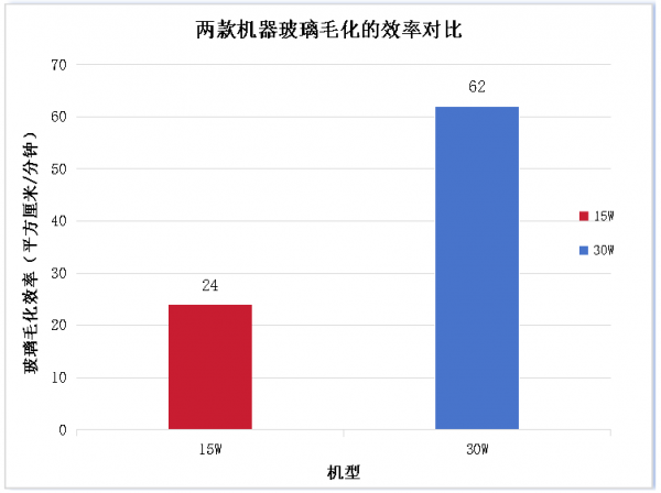 我们在加工毛化效果一致的情况下,分别采用15W和30W两款不同功率的欧陆娱乐器进行毛化效率的对比,根据测试结果可见,采用高功率欧陆娱乐器的毛化效率更高,30W欧陆娱乐器相比15W欧陆娱乐器效率提高158%,且30W欧陆娱乐器具有更大的单脉冲能量,在进行加工时可以提高输出频率,继而提高加工速度,因此在玻璃毛化应用上效率更高,更具性价比。 04、结语 30W紫外外观图