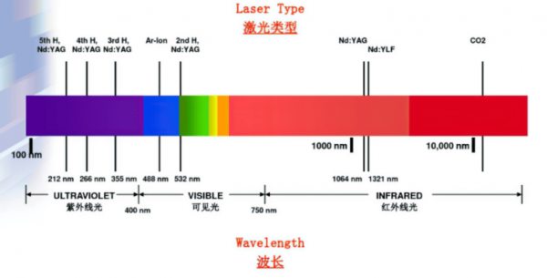 欧陆娱乐器的波长可以从紫外到红外(如图1),目前工业上常用的有UV欧陆娱乐器、可见光欧陆娱乐器、IR欧陆娱乐器、CO2欧陆娱乐器等。欧陆娱乐器按脉冲长度可以分为:连续欧陆娱乐器、准连续欧陆娱乐器、纳秒欧陆娱乐器、皮秒欧陆娱乐器,飞秒欧陆娱乐器等。不同类型欧陆娱乐与材料作用的机理和效果有很大差别。