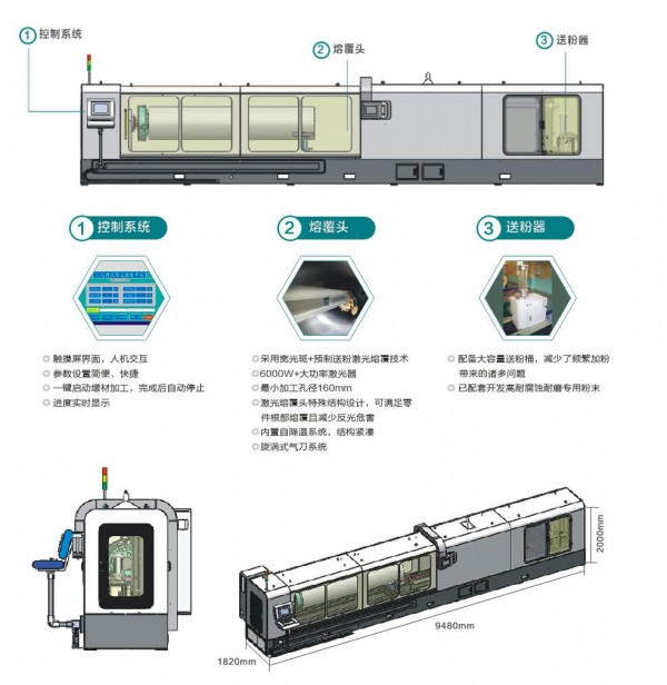 熔覆效率高达0.25-0.4㎡/h;单层熔覆厚度可在0.5mm至2.0mm区间灵活调节;熔覆致密度、硬度、耐蚀性等指标行业领先。