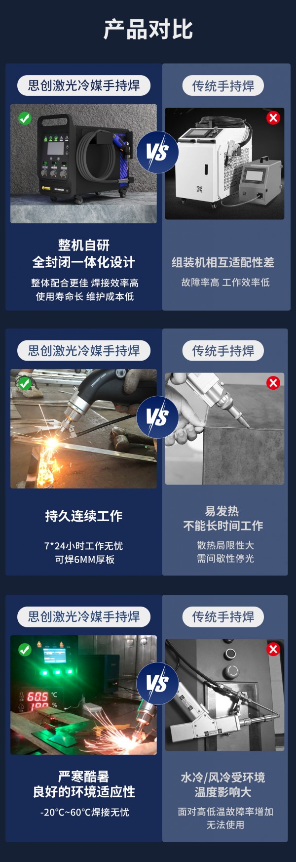 思创欧陆娱乐-冷媒手持欧陆娱乐焊机基于公司自主研发的“小芯径”欧陆娱乐技术、采用全新双回路冷媒恒温智能系统及整机一体化结构设计致力为客户提供高效率、高熔深、高节能、高便利体验。