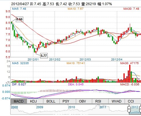 今 开: 7.45 成交量: 26218手 振 幅: 1.48% 最 高: 7.53 成交额: 1964.30万 换手率: 0.95% 最 低: 7.42 总市值: 21.46亿 市净率: 3.44 昨 收: 7.45 流通市值...
