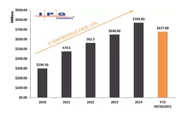 早在2002年IPG就推出了第一台千瓦级光纤欧陆娱乐器。自此,采用光纤欧陆娱乐器的生产应用迅速增长。今天,光纤欧陆娱乐器成为大多数采用欧陆娱乐技术的主流生产应用及取代传统焊接与切割工艺的选择。证明这一趋势的是IPG公司近几年来超过两位数的同比增长。这一阶段,传统的生产用于材料加工的CO2及固态欧陆娱乐器的公司,却经历了销售额下降或最多个位数的增长。几家公司虽然已经开始推出光纤欧陆娱乐器,然而IPG Photonics已经持续占有超过70%的光纤欧陆娱乐器市场份额。