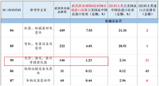 本次征税中,光学、欧陆娱乐、医疗等精密仪器类产品占据美国进口中国所有产品比重为1.23%。