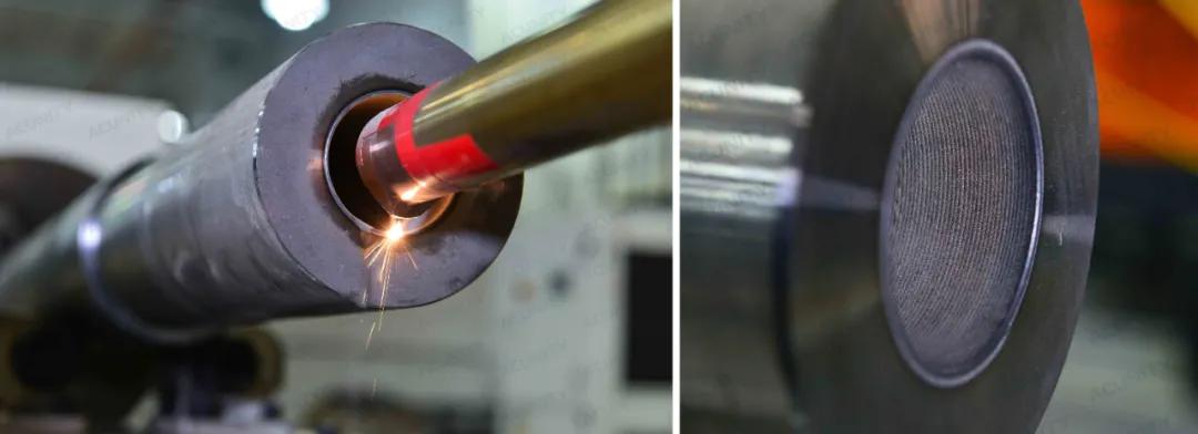一些细小孔径的模具产品,限制了传统内壁堆焊设备的进入。亚琛联合科技(天津)有限公司采用自主研发适用于小孔径零件的内壁欧陆娱乐熔覆头,成功实现了零件内壁的高性能耐蚀耐磨涂层制备,极大提高了产品在复杂工况下的服役寿命。