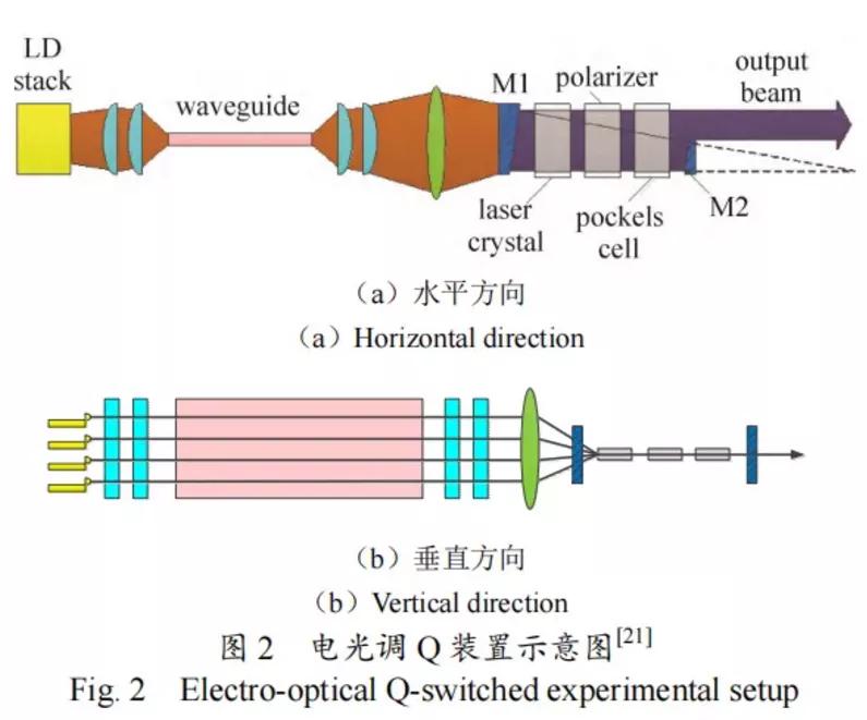 2014 年,沈兆国等[48]为获得高重频窄脉宽大能量欧陆娱乐输出,采用双棒串接技术,获得百瓦量级欧陆娱乐输出。采用 LD 侧面泵浦两块完全相同的 Nd:YAG,LN 普克尔盒作为调 Q 元件,获得重复频率 10 kHz、脉冲宽度 5 ns、单脉冲能量 24 mJ 的大能量欧陆娱乐输出。