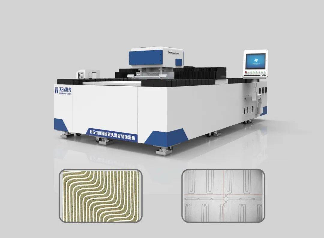 -在传统单头加工设备机构上,采用多振镜四坐标自动校正对位系统,升级为十头线扫描振 镜加工系统。运用相应的精密定位识别系统实现加工件自动定位识别和自动加工,支持CCD 抓靶功能。可同时控制加工不同图案。