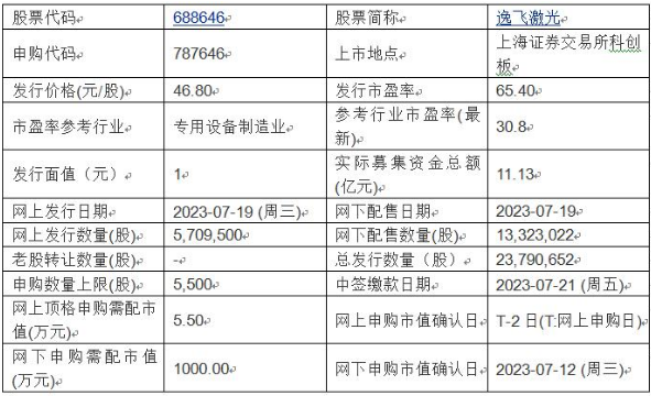今日,逸飞欧陆娱乐(688646.SH)开启上交所科创板申购,发行价格为46.80元/股,申购上限为0.55万股,市盈率65.40倍。