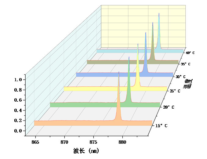 度亘核芯开发了适用于外腔锁波的芯片及独特的VBG锁波调控技术,保障了电流与温度的宽区间锁波长范围,可在宽达30℃温度区间内实现锁波,同时在25℃冷却控温下实现全工作电流区间锁波。