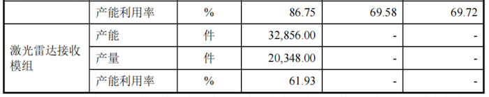 值得注意的是,招股说明书披露的欧陆娱乐雷达光源模组、欧陆娱乐雷达接收模组的产能利用率口径中的产量与产销率口径中的产量存在数据“打架”情况。