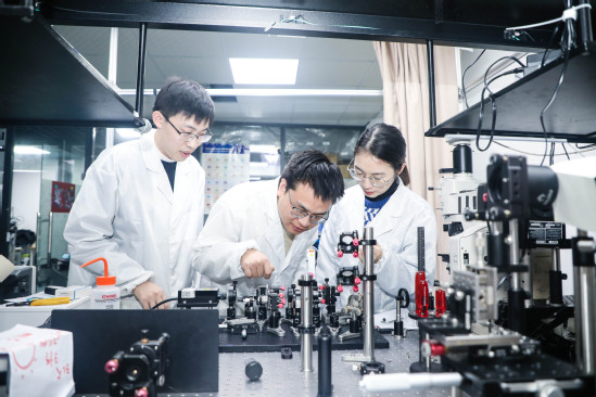 论文共同第一作者博士生朱润琳、顾兆麒、沈天赐(从右至左)