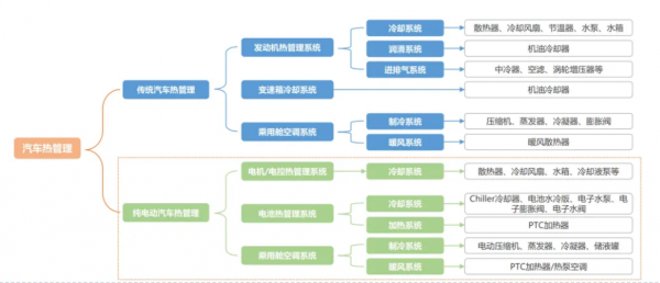 加热和冷却的需求催生了热管理系统的整个产业,而这些需求又来源于对电动汽车安全性、舒适性、零部件寿命、充电功率等多个方面。通常,客户对热管理系统的期待都是间接的,既想要座舱内的舒适温度,又想要保护车内动力部件的安全,最重要的是非常在意续航里程。 这其实就奠定了当下热管理系统研发的主旋律:以尽可能小的能量间接地满足客户对整车系统各方面的直接需求。 新能源汽车热管理系统主要包括空调热管理系统、电机和电控冷却系统以及电池热管理系统三大部分,其不仅需要为乘员舱提供舒适的温度,还需要为整车的动力电池仓及电子控制系统提供热管理,以避免发生极端气温下的性能或安全问题,其涉及整车的舒适性、安全性和续航能力,属于新能源汽车的关键子系统技术。同时,由于新能源汽车动力电池对工作环境温度有严格要求,热管理系统对动力电池的性能、安全性、寿命及使用成本等方面有着至关重要的影响,新能源汽车热管理系统的性能优劣将直接影响汽车的整体性能。