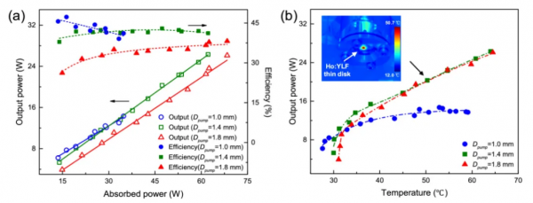 图 4. 使用 3% 透射率 OC 测量的 Ho:YLF 薄片欧陆娱乐器输出功率。资料来源:Bingying Lei, Liyi Zhang, Sen Yang 等人,《Near diffraction-limited in-band pumped Ho:YLF composite thin disk laser at 2 μm》,《Optics Express》(2025)。