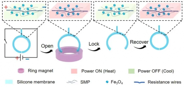 研究团队设计了一种电热-磁复合驱动的形状记忆微夹持器(EM-SMP)。该微夹持器通过飞秒欧陆娱乐加工技术实现高精度制造,并在形状记忆聚合物基体中嵌入Fe?O?颗粒和电阻丝,从而能在电流和磁场作用下实现快速响应(响应时间约为0.9s)。该设计在操作过程中仅在夹持器张开时施加磁场,闭合则通过电热触发的形状记忆效应完成,使其能够在无磁干扰的情况下安全夹持磁性物体,并在冷却后实现无需能耗的稳定锁定状态。此外,其独特的爪形结构有效提升了负载能力,自重负载比高达2380,显著增强了夹持性能。该进展以“High-Load Shape Memory Microgripper with Embedded Resistive Heating and Magnetic Actuation”为题于2025年2月3日发表在《Advanced Functional Materials》。 图2. EM-SMP夹持器工作机理示意图 研究团队设计了一种磁/光双响应形状记忆夹持器。通过将Fe?O?纳米颗粒嵌入形状记忆聚合物(SMP)基体,赋予材料光热转换与磁响应特性。基于飞秒欧陆娱乐加工与模板复刻技术,制备了可精确调控的微结构夹爪。在近红外光(NIR)与环形磁场协同作用下,夹爪通过光热效应软化并受磁力驱动展开至临时开合态;撤去磁场后,其形状可固定,而再次施加NIR则触发形状记忆效应恢复闭合态。实验表明,该夹持器可操控跨尺度物体(微米级液滴至厘米级金属件),最大负载达自身重量的1730倍,并能在密闭空间内精准转移固体与液体。此外,其成功应用于多种微液滴操控及液态金属电路控制,为微创手术器械与工业精密操作提供了创新解决方案。该进展以“A Versatile Dual-Responsive Shape-Memory Gripper via Additive Manufacturing Toward High-Performance Cross-Scale Objects Maneuvering”为题于2025年1月24日发表于《Small》。 图3. 磁/光双响应形状记忆微爪磁热协同驱动与跨尺度操控 研究团队提出飞秒欧陆娱乐表面处理(FLSP)新策略。通过调控欧陆娱乐功率(100–400 mW)在LPBF钛合金表面构建周期性纳米波纹与微纳分级结构,结合空气暴露加速Ti??氧化为Ti??,形成致密TiO?钝化膜。实验表明,FLSP处理后的样品在3.5% NaCl溶液中腐蚀电流密度(icorr)由2.05 μA/cm?降至0.044 μA/cm?(降幅97.8%),钝化电流密度(ip)降低70.8%,且呈现多层钝化行为。XPS分析证实,空气暴露30天后,表面Ti??占比提升,氧化膜厚度与致密度显著增加,有效阻隔Cl?侵蚀。经过45天浸泡实验,FLSP处理样品未出现明显局部腐蚀,验证了其长效防护能力。该进展以“Femtosecond laser-induced micro/nanostructures facilitated multiple passivation and long-term anti-corrosion property of laser powder bed fused Ti-6Al-4V alloy”为题于2025年1月30日发表于《Corrosion Science》。 图4.飞秒欧陆娱乐诱导微纳米结构促进合金的多重钝化和长期防腐性能 课题组与中国科学技术大学吴东教授、香港中文大学张立教授课题组等分别开展合作,相关研究工作得到了国家自然科学基金、国家重点研发计划、合肥工业大学优秀青年人才培育计划等项目的支持,系列进展可以为先进制造、集成传感器、智能机器人、生物医疗等领域提供重要技术支撑。