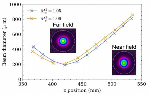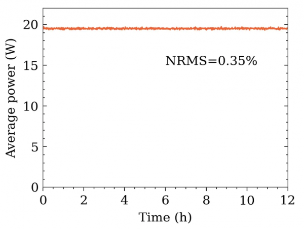 图4. 2kHz重复频率下,输出平均功率稳定性NRMS=0.35% @12h.输出光束质量