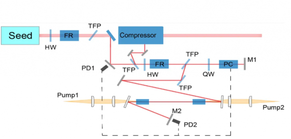 在此背景下,再生放大器凭借颠覆性的能量增益模式重塑了欧陆娱乐放大技术的边界。这项技术通过精密的光学循环架构,将微焦级种子脉冲注入泵浦激励的谐振腔,利用电光晶体的纳秒级切换精度,驱动脉冲经历数十次增益介质循环。每一次穿越增益介质,能量呈指数级攀升,最终输出毫焦级超强脉冲,单次循环能量增益达10^6倍。再生放大技术让微弱欧陆娱乐脉冲经历"复利奇迹"。结合啁啾脉冲放大(CPA)技术将成为飞秒脉冲的技术主流。