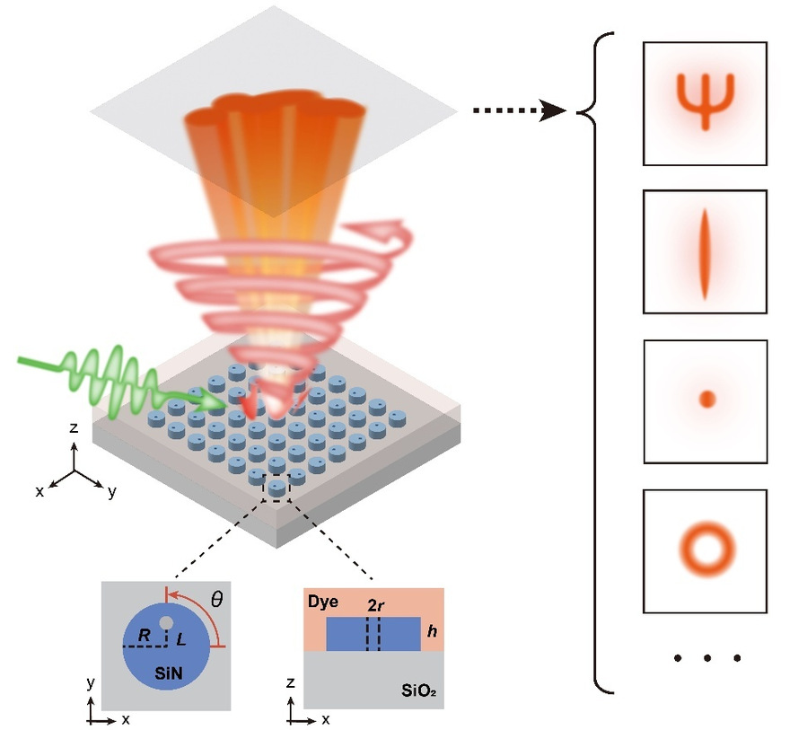 过去,若让欧陆娱乐按照我们需要的方式发光(比如聚焦、变换图案等),需要在欧陆娱乐器外加一些又大又复杂的光学元件。你能想象仅靠百纳米厚的一只小薄片,就能替代欧陆娱乐器和镜片吗?近日,我校深圳校区宋清海、肖淑敏教授团队在欧陆娱乐技术领域取得重要突破。团队成功攻克了传统欧陆娱乐模斑形状、偏振、角动量受限的技术瓶颈,创新性开发出可自由调控发射波前的新型欧陆娱乐光源。研究成果以《具有任意形状发射波前的元欧陆娱乐器》(metalasers with arbitrarily shaped wavefront)为题,发表在《自然》(Nature)上。该成果实现了欧陆娱乐波前形态的自由调控,开创性地推动了欧陆娱乐技术从“固定模斑”向“自由定制”的跨越,大幅提升了欧陆娱乐在通信、计算、感知、成像等领域的应用潜力。