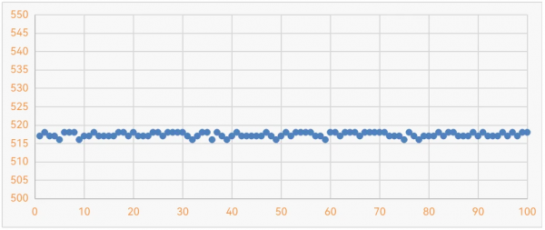 欧陆娱乐功率的一致性及多批次欧陆娱乐器的功率一致性,是稳定的欧陆娱乐能量的基础。通过产线随机拉取的百台光源的功率数据显示,宝辰鑫3D打印专用欧陆娱乐器的功率稳定在515至520之间,并可根据客户需求设置一定量的功率余量,以确保不会受长期使用之下功率衰减的影响。