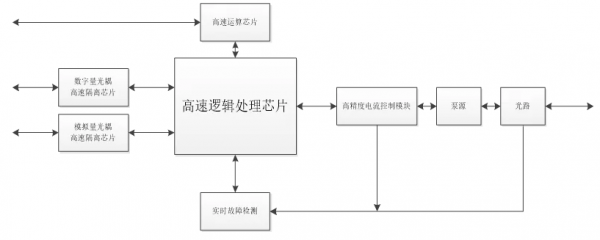 其中,光源控制模块,主控制采用并行的高速逻辑处理芯片,能够达到ns级的控制响应速度。