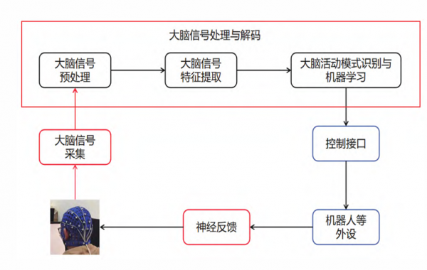 从词语结构,可以看出有两个主体:大脑、计算机。而接口,可以理解为大脑和计算机技术的交互。比如,瘫痪的病人利用该项技术,可以通过意念去操控机械手臂,从而实现倒水、打字等本身无法完成的动作。