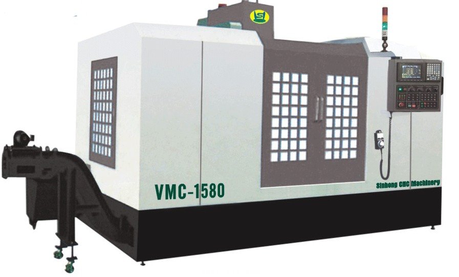 ◆ 可对应Windows95/98/2000NT40/ME/XP的PLC开发软件。 型号/单位 VMC-1580 X轴行程(mm) 1500 Y轴行程(mm) 800 Z轴行程(mm) 700 主轴端至工作台(mm) 170-800 主轴中心至立柱面(mm) 800 工作台尺寸(mm) 1700*800 工作台最大载重(kg) 1500 T型槽宽度(mm) 5-22 主轴锥度 BT50 主轴最大转速(rpm) 8000 主轴/电机规格(kw) 15/18.5 三轴/电机规格(kw) 4.5*4.5*3.5 三轴移动速度(mm/min) 15000/15000/12000 最高进给速度(mm/min) 1-10000 定位精度(mm/min) ±0.01 重复定位精度(mm) ±0.005 气压(kg/cm2) ≥6 电源KVA 28/32 机械重量(kg) 140000 机床外形尺寸(长*宽*高) 4300*3300*3500