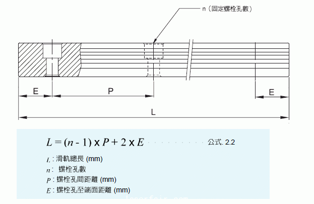 烟台同升科技发展有限公司备有滑轨标准长度库存供应客户需求。假如客户订购非标准长度滑轨时,端面距离E的尺寸最好不要大於1/2P,防止因E的尺寸过大导致滑轨装配后端部的不稳定,而降低线性滑轨的精度,亦不可取用过小的E值(小於E)以避免螺栓孔破孔.#p#分页标题#e#