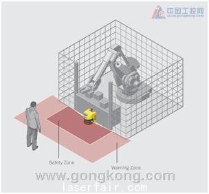 有两个自定义的区域类型:安全区(也称保护区);警戒区(也称预警区)。如果有人进入警戒区,欧陆娱乐扫描仪会输出听觉或视觉的报警信号。如果有人在安全区进行违规操作,则扫描仪会自动开启安全保护、紧急停机程序。