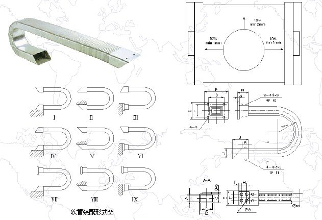 矩形金属软管采用全金属结构,该产品符合JB/GQ058285企业联合标准,适应于各类金属切屑机床及切割机床防止高热铁屑对您供电、水汽线路的损伤保护劳动安全。