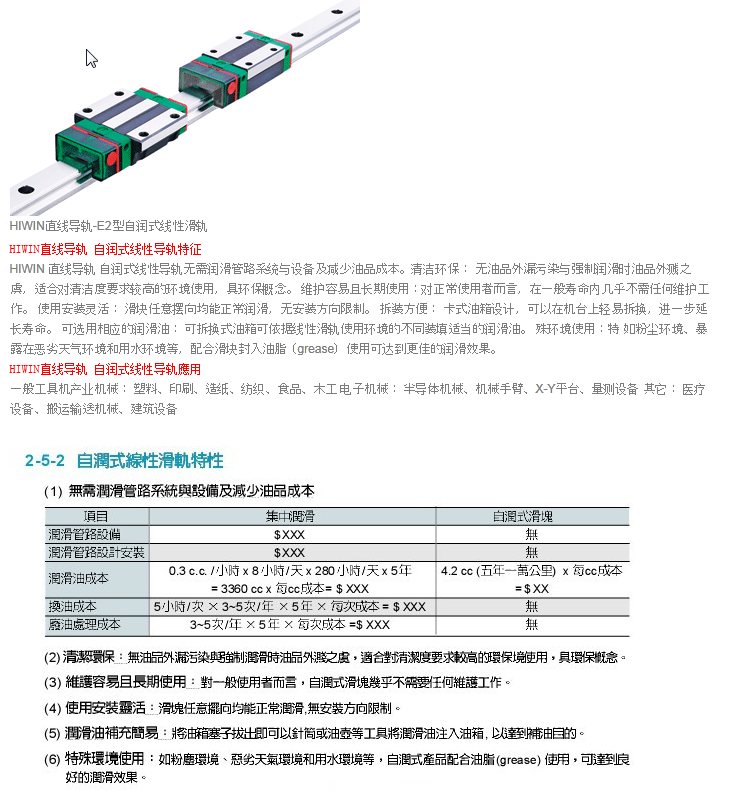 直线导轨 / HIWIN直线导轨-E2型自润式线性滑轨