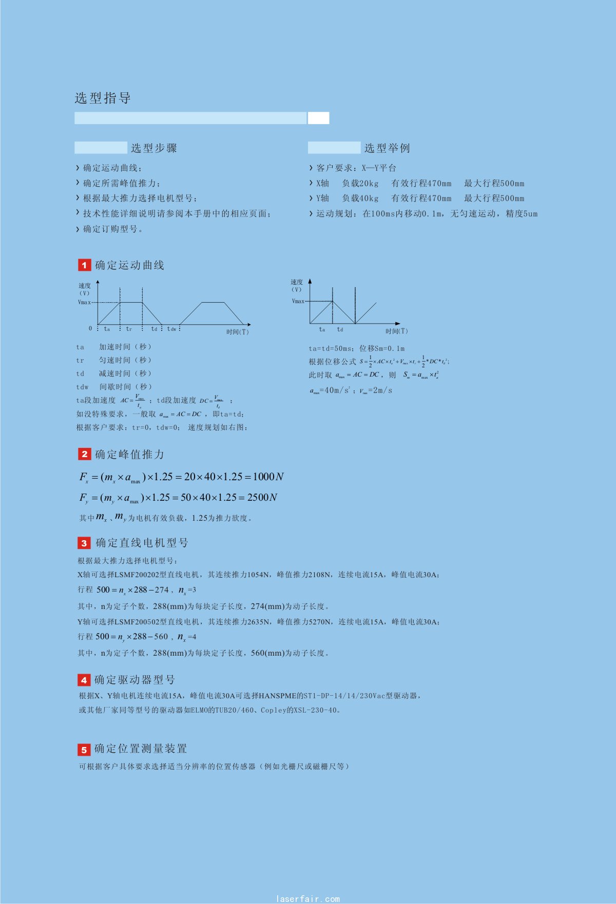 本文介绍了直线电机选型时需要注意的一些参数指标,可以分为五个步骤:1、确定运动曲线;2、确定峰值推力;3、根据最大推力选择直线电机的型号;4、确定电机驱动器的型...