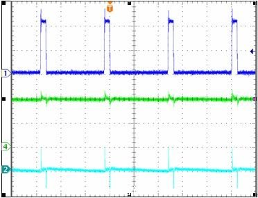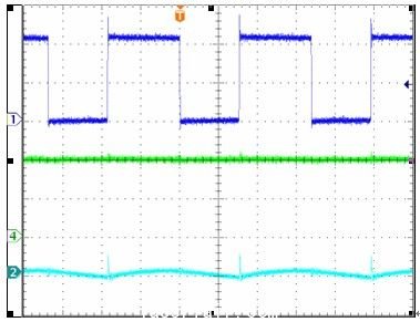 图5-6显示了输入电压为12V(标称值)和2.8V(冷启动时的最坏情况)下LM3492电路的波形。表1总结了LM3492电路工作在标称条件和冷启动条件下的测量结果。可以看到,即使输入电压低至2.8V时,LED电流也保持不变,这表示背光亮度并不受冷启动条件影响。从图6的波形可知,输入电压为2.8V时的占空比大于90%,同时还测量了2.61A的大输入电流,如表1所示。为此,其内部MOSFET开关的功率损耗也就相对较大。LM3492外壳上可测得90?C的温升(标称输入电压范围下仅为30?C)。参考表1中的效率可知,冷启动条件下的效率会下降到56%,尽管标称输入电压范围内的效率可高达90%。
