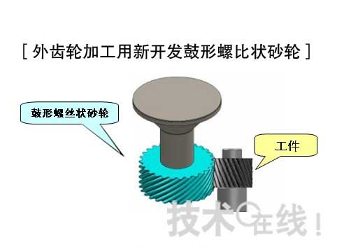 此次在ZI20A上新安装了软件,并配备了与桶形相反、即中央部比两端细的“鼓形螺丝状砂轮”,由此实现了对外齿轮的研磨功能。通过将各类齿轮研磨床归并为一台,降低了成本。