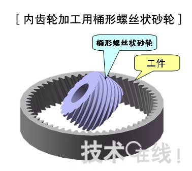三菱重工开发出了利用一台齿轮研磨车床来量产汽车变速箱等使用的内齿轮及分级或带轴外齿轮等齿轮的技术。使用2009年上市的内齿轮专用研磨床“ZI20A”。“ZI20A”原本就配备有中央部分比两端部分粗的“桶形螺丝状砂轮”,通过倾斜旋转工件的轴和砂轮的轴来研磨行星齿轮架等使用的内齿轮。