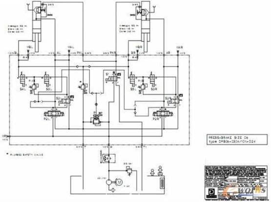 数控折弯机主要为上活塞式压机,其主要工作特点是,由两只平行运动的工作液压缸形成垂直向下的压力,以驱动折弯梁上的模具进行折弯工作。其数控式迪普马液压控制系统,主要是控制折弯过程的同步运行和液压缸在机器满负荷工作时在下死点的定位。
