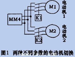 以上3种工作状态在同一时刻只允许有一种运行,互不干扰,这样才能保证变频器的正常运行。这就要求要从外界通过变频器的数字量输入介入来控制两种驱动图1两种不同参数的电动机切换电动机参数的切换。在变频器的运行或准备状态阶段利用一个或多个外部信号同时改变参数组,从而达到一台变频器控制两台及多台电动机,如图1所示。