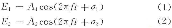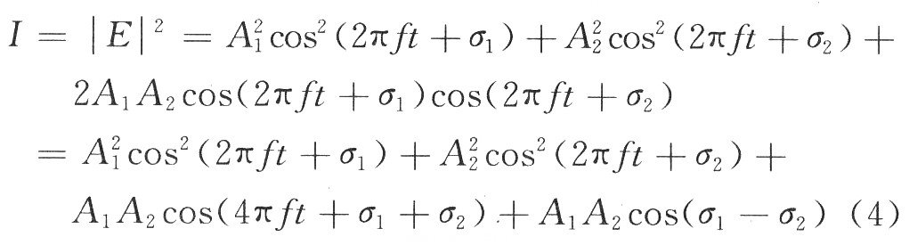 式中:A1和A2分别为光波的振幅;σ1和σ2分别是光波的位相;当E1和E2满足相干条件时,其光波的合成复振幅E为: