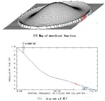 图 4 给出了系统的波前像差,图 5 给出了传递函数图。