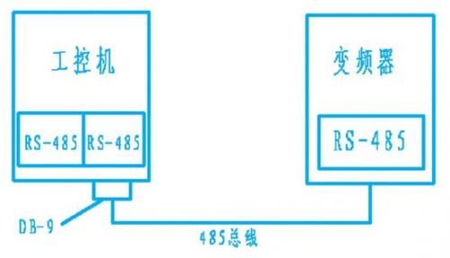 本系统所采用的通讯方式是利用美国ni公司的工控机与台达vfd-b系列变频器的rs-485串口通讯。工控机的控制器为nipxi-8106,自带1个rs-232通讯串口。由于系统还需要与仪表和plc通讯,而且变频器、仪表和plc三者之间的通讯协议不同,工控机另配有1块串行通讯模块nipxi-8431(含有两个rs-485串口)。使用工控机rs-232串口和台达变频器的rs-485串口通讯,中间需加rs-232/rs-485转换器,如图1所示。如果使用串行通讯模块nipxi-8431的rs-485串口,须用db-9连接器连接工控机的rs-485串口与变频器的rs-485串口,如图2所示