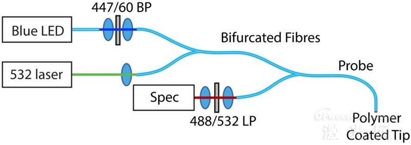 在文章中,研究小组介绍了将两种荧光物质团嵌入到位于光纤探针两端的聚丙烯酰胺基质中,并得出结论:探针能够有效监测出生理pH范围内的过氧化物水平。