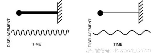 固有频率,顾名思义,为系统本身发生的振动的频率。数值上来看,固有频率等于共振频率。考虑物块与弹性悬臂梁组成的系统,固有频率取决于两个因素——物块质量,以及充当弹簧的弹性悬臂梁的弹性系数。质量减小或弹性系数减小可增大固有频率;质量增大或悬臂梁弹性系数增大可降低固有频率。