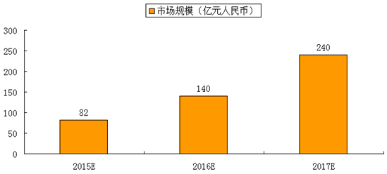 服务机器人市场规模快速增长。根据易观智库的预测,2015年中国服务机器人市场规模大约在82亿元左右,2016年将增长至140亿元左右,而2017年市场规模将突破200亿元。