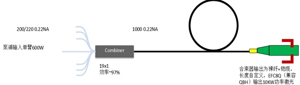 西安中科汇纤针对客户要求,推出万瓦级别合束器+QBH成套方案,已经在华南、韩国等市场获得小批量使用,效果良好。DDL类型典型结构如下所示: