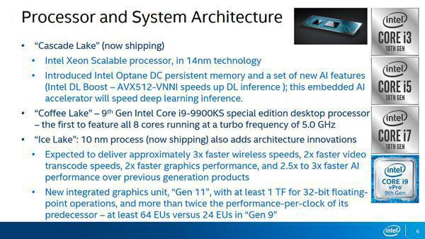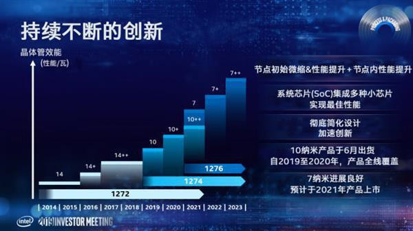 在2019年5月份的投资会议上,英特尔公布新一代制程工艺路线图,14nm工艺(对标台积电10nm)会继续充实产能,10nm工艺(对标台积电7nm)消费级产品将在年底开始大规模出货,服务器端也计划在2020年上半年推出。