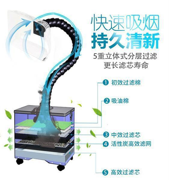 离心风机:采用大负压无刷直流离心风机,最长寿命可达4万小时,无须维护可靠性高。运行噪声低,可实现高无级调速、高风压、高效能的特点。且可通过遥控实现基本的开关机、加减速及定时关机功能。便于特殊使用场合中应对人工开关机不方便的场合。本产品共使用多级过滤器,净化过程中粉尘按过滤精度逐层过滤,实现0.5um以上的粉尘完全过滤。最后由高效活性碳过滤性对不含0.5um以上粉尘的空级进行最后一次有毒有害气体吸附,实现最终达标的洁净空气排排放。