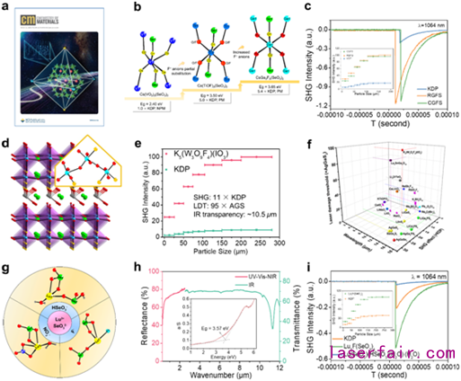近期,该研究团队在复合型含氧酸盐二阶非线性光学晶体的研制方面也取得系列进展。他们先后报道了系列高效复合型含氧酸盐二阶非线性光学晶态材料的制备及其性能,包括:发现了六方氧化钨构型亚硒酸盐倍频晶体实现相位匹配的机制(Chemistry of Materials, 2020, 32(16), 6906-6915, Front Cover(主封面文章)),运用单齿阴离子部分取代策略制备宽带隙,强倍频稀土亚硒酸盐晶体(Chemistry of Materials, 2020, 32(7), 3043-3053),采用水热法创制了高欧陆娱乐损伤阈值中红外碘酸盐倍频晶体(Chemistry of Materials, 2019, 31(24), 10100-10108),设计制备的系列新型二阶非线性光学晶体性能均优于之前文献报道的二阶非线性光学晶体。