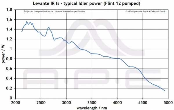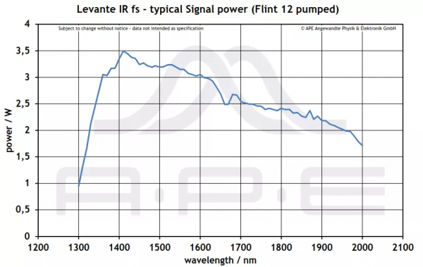 Levante IR fs OPO主要技术指标(12W泵浦):